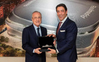 欧冠开赛前,老佛爷与本菲卡主席鲁伊-科斯塔交换礼物
